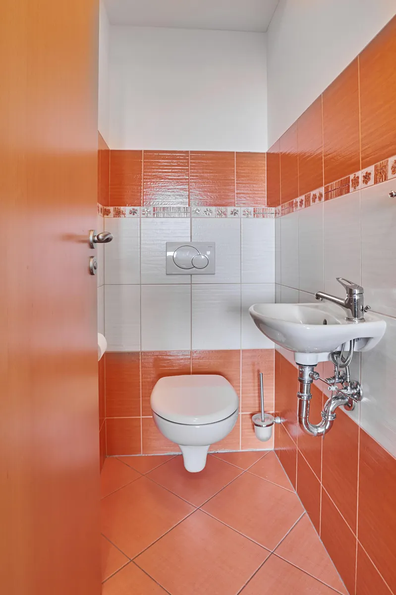 Sklepní kóje (4 m2) a samostatná garáž (17 m2) se nacházejí v 1. patře domu.