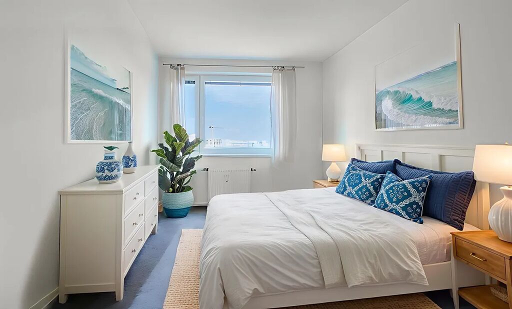 prostorný obývací pokoj s kuchyňským koutem (34 m2) a vstupem na lodžii (6,4 m2), 2x samostatný pokoj (13,8 m2 a 11,7 m2), koupelna s vanou, WC s umyvadlem zvlášť.