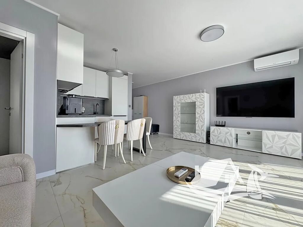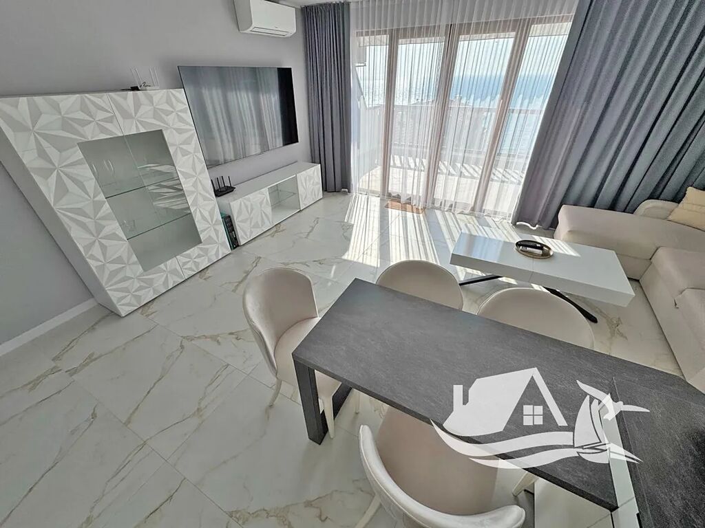 Tento elegantní apartmán o dispozici 3+kk a celkové ploše 103 m² se nachází v pátém patře soukromého rezidenčního komplexu Sun Coast Resort, přímo u moře ve městě Sveti Vlas. Nabízí prostorný obývací pokoj s kuchyňským koutem, dvě samostatné ložnice, koupelnu s toaletou a velkou terasu s dechberoucím výhledem na moře. Apartmán se prodává včetně kompletního nábytku a vybavení, takže si můžete svůj nový domov u moře začít užívat ihned po koupi.