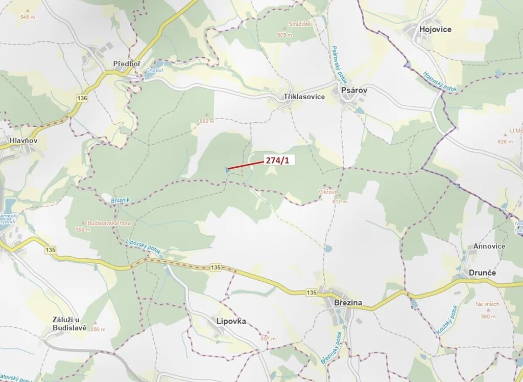 Lesní pozemek o výměře 2949 m2, parcelní číslo 274/1, podíl 1/1, katastrální území Tříklasovice, obec Psárov, obec s rozšířenou působností Tábor, okres Tábor, Jihočeský kraj. Po těžbě.