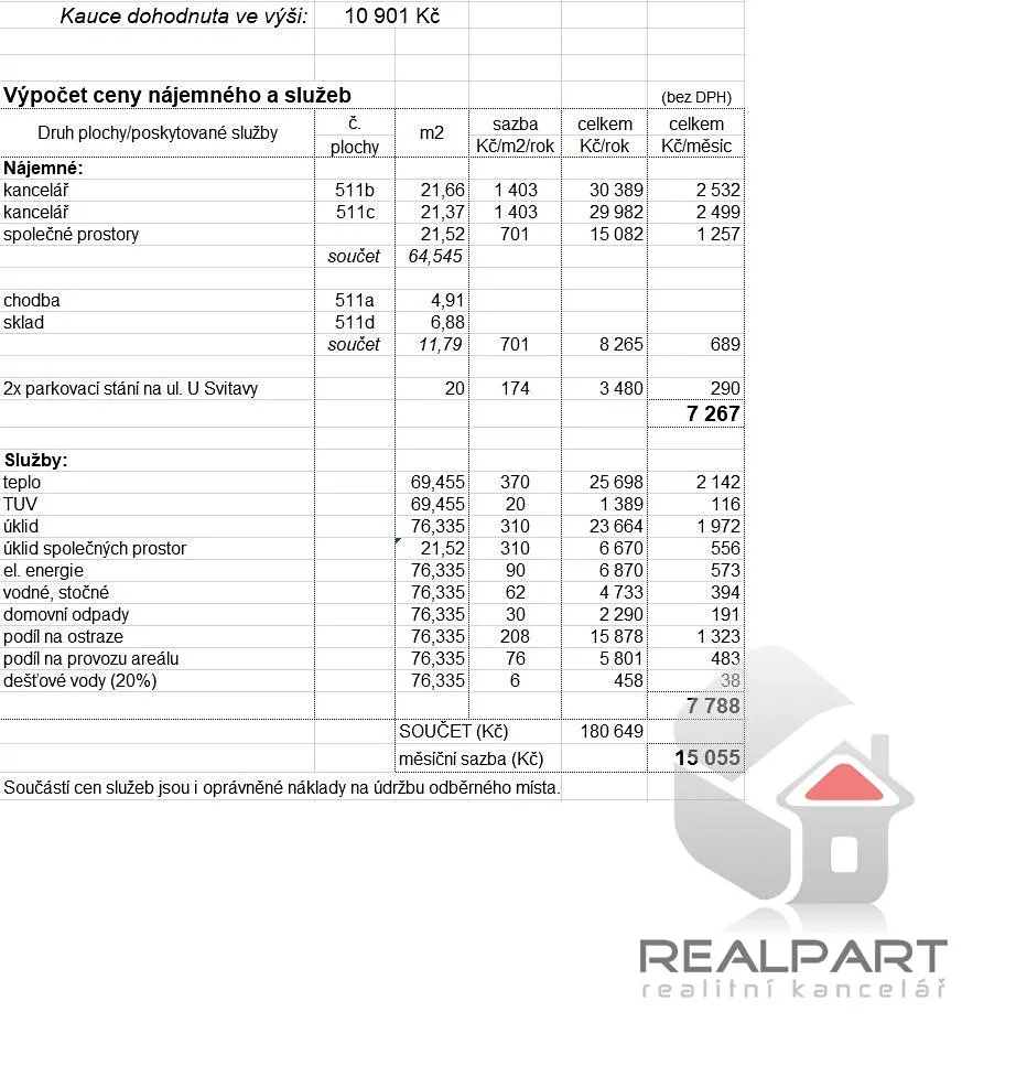 (+ záloha na služby 7.788 Kč , uvedené ceny jsou bez DPH)