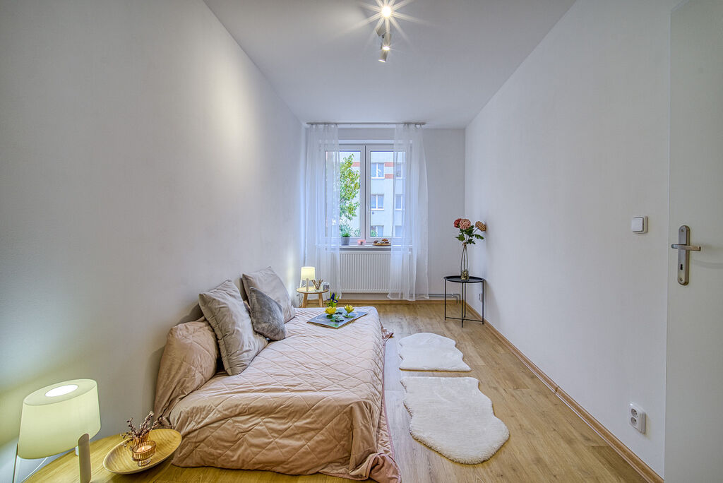 Nabízíme k pronájmu krásný byt 3+1, po kompletní rekonstrukci. Byt se nachází ve zvýšeném přízemí panelového domu a disponuje novou kuchyňskou linkou se sklokeramickou varnou deskou, elektrickou pečící troubou, myčkou a digestoří. V kuchyni se dále nachází plynový kotel na ohřev vody a topení. V koupelně se nachází vana, umyvadlo se skříňkou, koupelnová skříňka a zrcadlo. Toaleta je samostatná. Součástí pronájmu je i 2x sklepní kóje. Byt není vybaven nábytkem. Nájemné zde činí 13 500,- Kč, záloha na služby 700,- Kč pro 1 osobu + 500,- Kč každá další osoba. Vratná kauce je 25 000,- Kč. Při rezervaci se platí provize realitní kanceláři ve výši 16 000,- Kč. Elektřina a plyn se přepisují na nájemce. Byt je volný ihned. V případě zájmu o prohlídku či více informací neváhejte kontaktovat makléře.