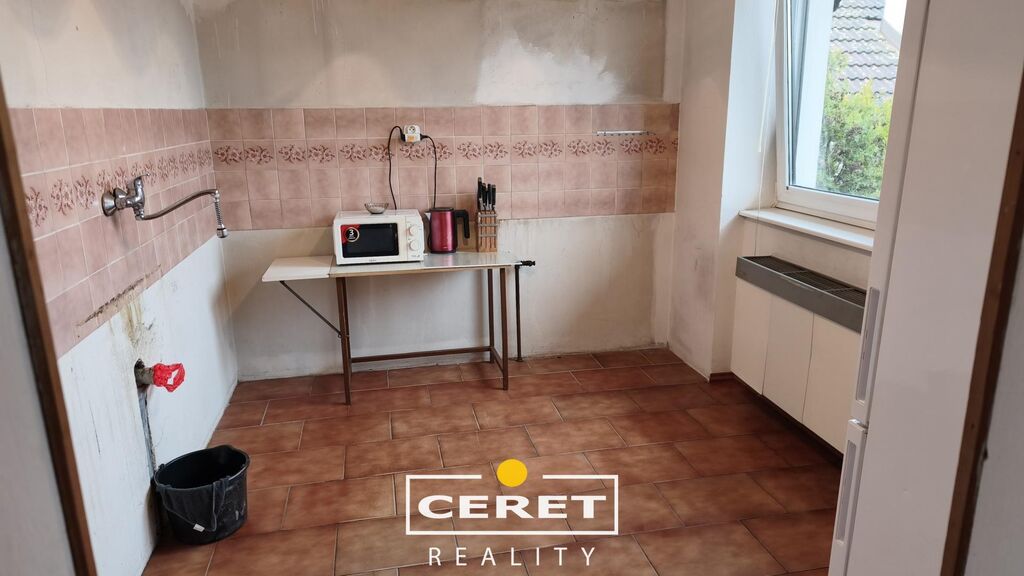 V domě jsou dvě koupelny, tři wc a kuchyňská místnost je připravená pro osazení linkou dle vlastních představ.