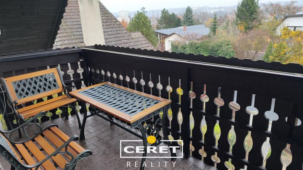 Disponuje posezením pod pergolami, terasami (z toho jedna uzavřená a vytápěná) a na balkonech s nádherným výhledem. Dále garáží a dílnou v suterénu, parkovacím místem, skleníkem a zahradou se samostatnou chatkou.