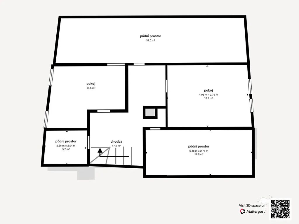Podkroví o výměře 32 m² pak nabízí dva pokoje a další prostory pro rozšíření obytné části.