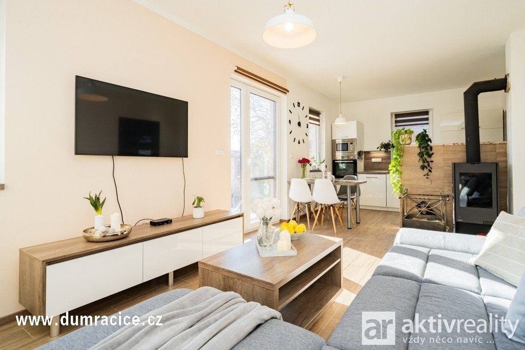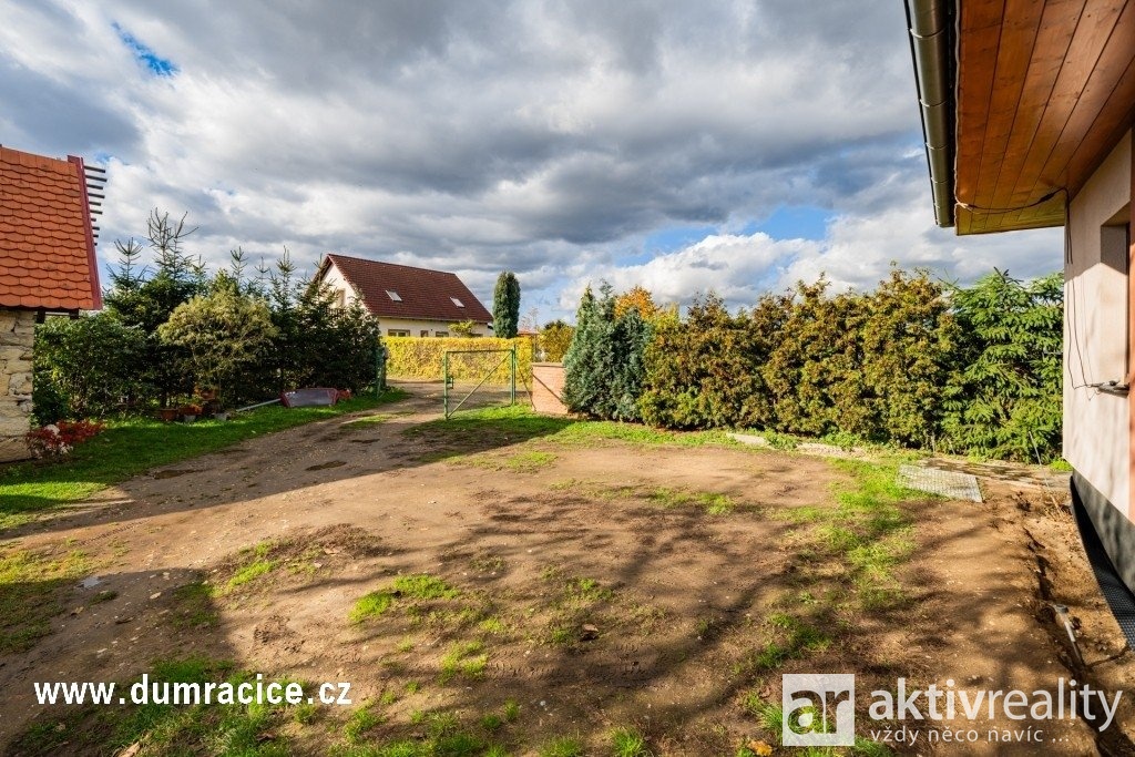 Hledáte moderní bydlení, kde ušetříte za energie, a ještě získáte bonus v podobě domu pro hosty? Představujeme vám kompletně nový zděný bungalov 4+KK z roku 2020 na pozemku o rozloze 999 m² v rekreačně atraktivní obci Račice u Štětí.