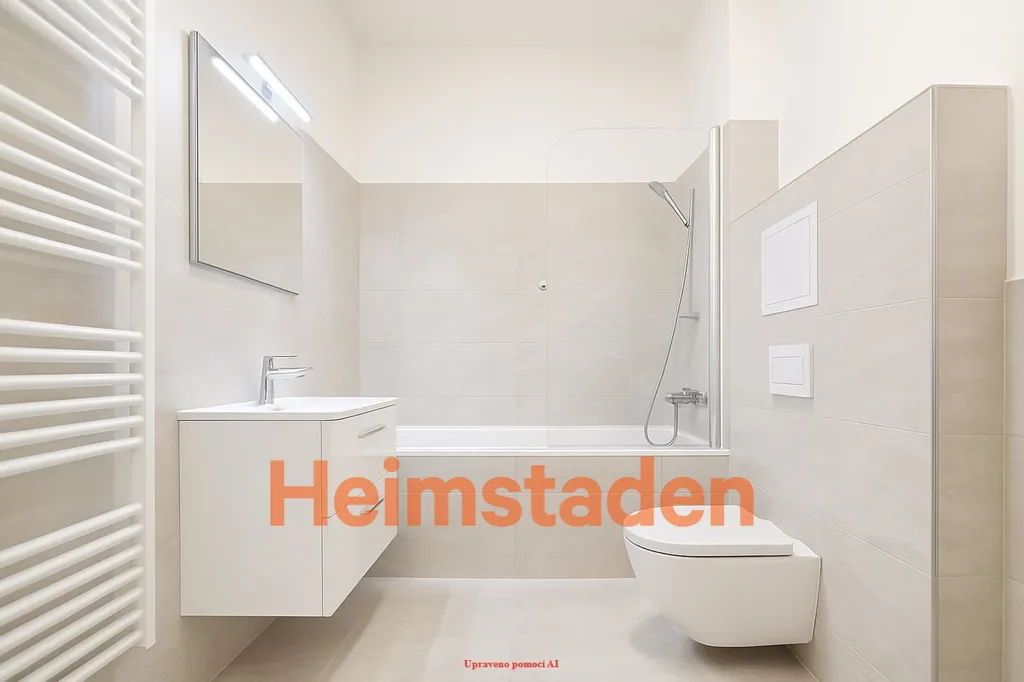 V celém bytě jsou příjemné plovoucí podlahy v jednotném dekoru, které dodávají interiéru moderní a čistý dojem. Koupelna v elegantním šedém ladění je vybavena vanou se zástěnou, závěsným WC a praktickým úložným prostorem.