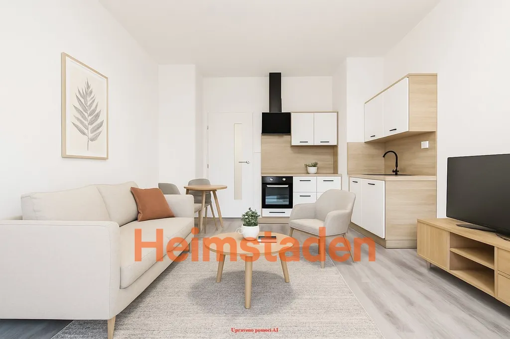 Hlavní obytný prostor tvoří moderní kuchyň s obývacím pokojem, která zaujme elegantní linkou s vestavěnými spotřebiči – včetně elektrické trouby, varné desky i myčky nádobí. Na kuchyň plynule navazuje obývací část, kde si snadno vytvoříte místo pro relax i společné chvíle. Z obývacího pokoje se vstupuje do ložnice, která poskytuje klidné zázemí a dostatek prostoru pro manželskou postel i úložné řešení.