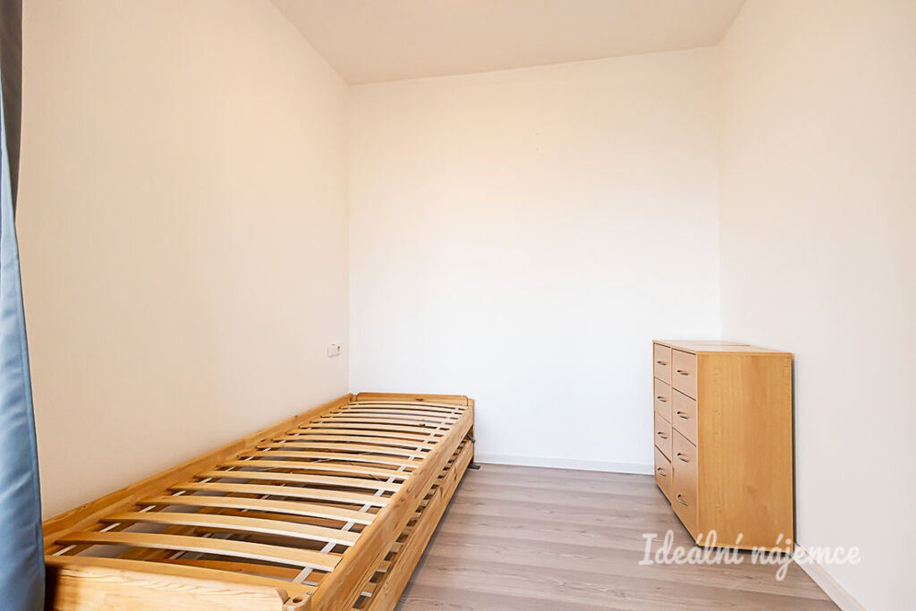 Byt je plně vybavený, takže se můžete nastěhovat bez dalších starostí. Kuchyňská linka je osazena lednicí s mrazákem, varnou deskou, digestoří, myčkou a pračkou, nechybí ani praktický jídelní kout. Obytná část nabízí pohodlný gauč, konferenční stolek a dostatek úložných prostor. Je zde také prostor s postelí. Koupelna je vybavena sprchovým koutem a umyvadlem, toaleta je samostatná.