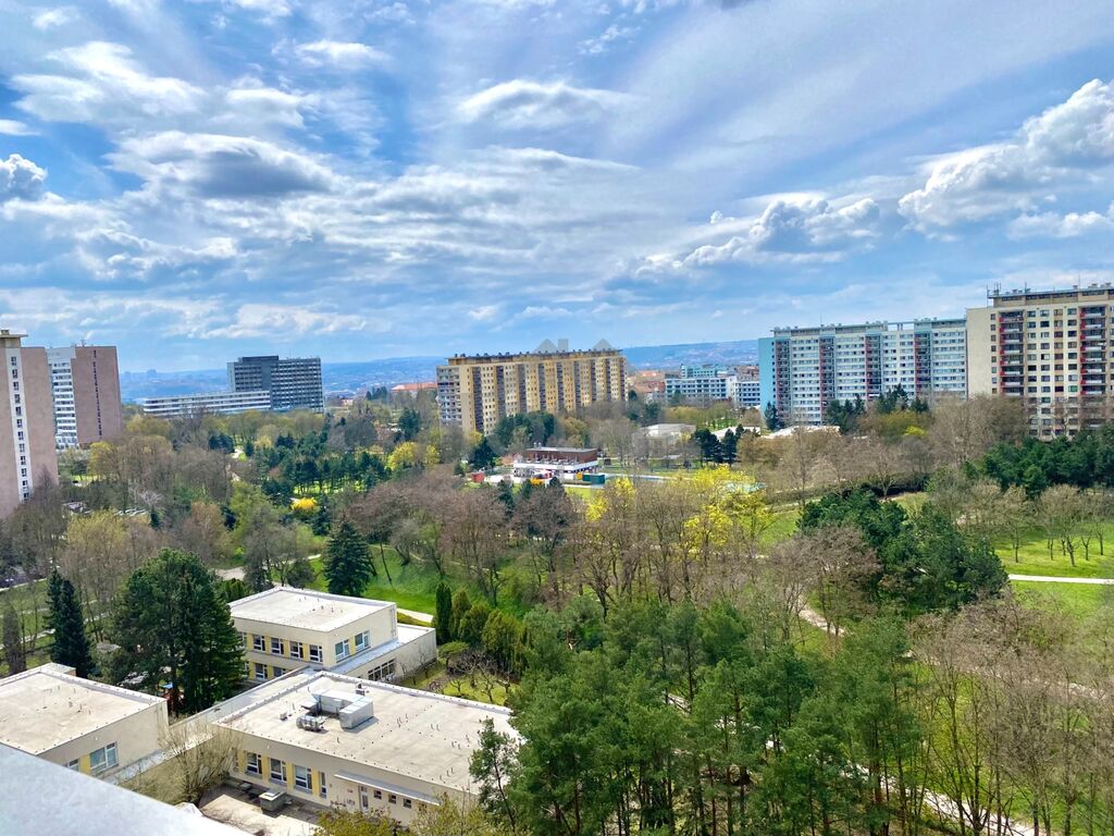 Nabízíme k pronajmu byt 2+kk, 45,87 m², včetně komory, Praha 8 - Kobylisy. Byt se nachází ve 12 N.P. ze 13.N.P. panelového domu s výtahem. Nemovitost se nachází, pouze 7 min. od metra Ládví, s krásným výhledem na celou Prahu.