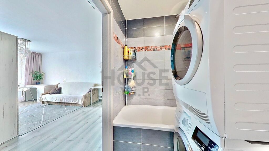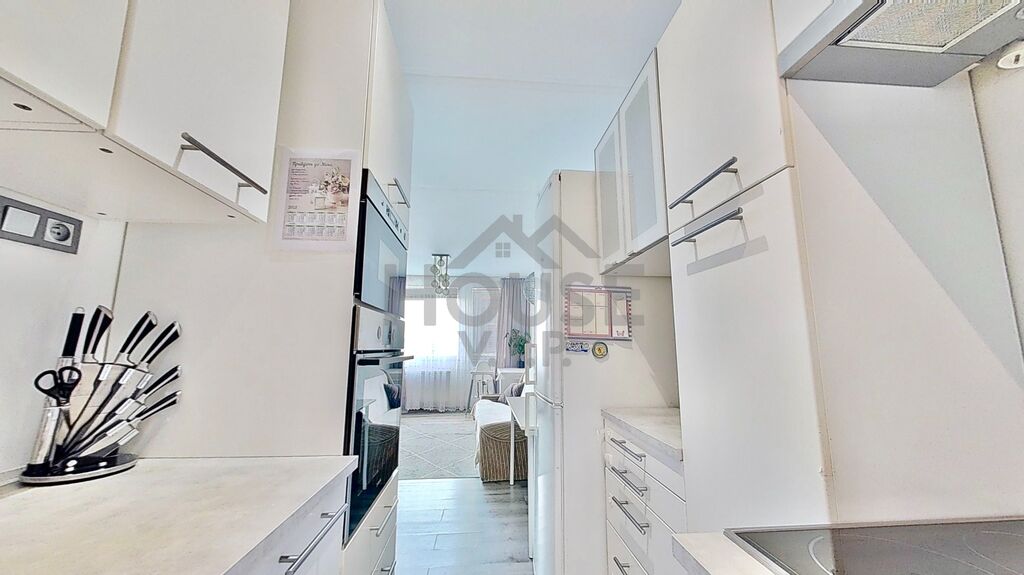 Jednotka prošla kompletní rekonstrukce, na konci roku 2018. Kuchyňská linka je vybavena indukční deskou, troubou, mikrovlnou troubou a myčkou. Byt se nabízí s vybavením: obývací stěna, pohovka, lednice, pračka, sušička, skříně atd. V obývacím pokoji, se nachází velké francouzské okno, na kterém je umístěna venkovní jednotka klimatizace.
