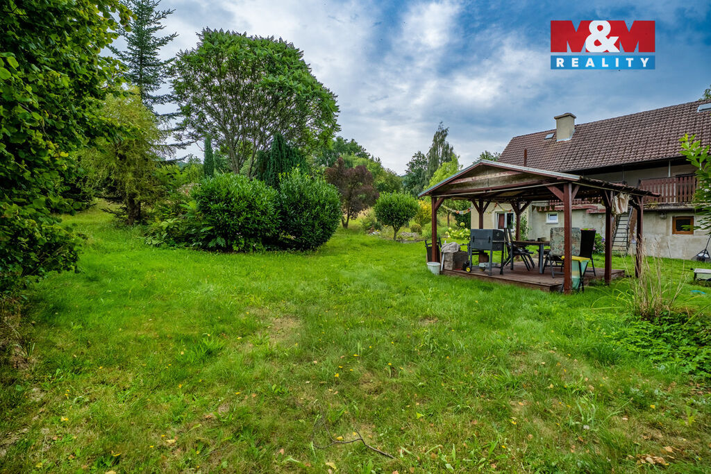 Na pozemku se nachází dvě garáže a studna. Dům nebude po prodeji napojen na veřejný vodovod, ale je možné využít vlastní zdroj vody ze studny nebo se zpětně připojit na veřejný vodovod. Terasa vyžaduje opravu, ale nabízí krásný výhled do okolní přírody.