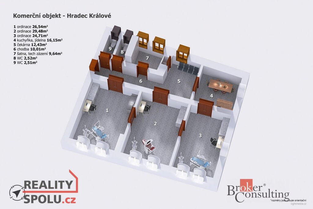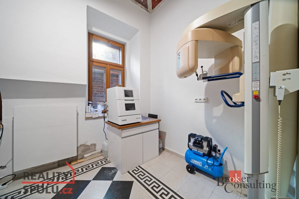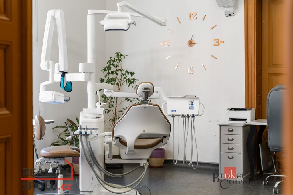 Nabízíme k prodeji nebytovou jednotku o velikosti 134 m² v prestižní historické budově Palác Komenium, přímo v centru Hradce Králové na ulici Komenského. Prostor je v současnosti kompletně zařízený jako stomatologická ordinace, ale díky dispozici 4+1 jej lze velmi jednoduše přizpůsobit i pro jiné lékařské či kancelářské účely, případně přestavět na jeden až dva byty.