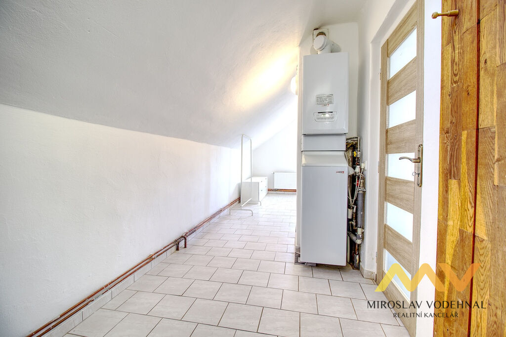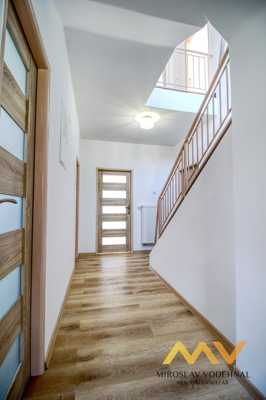 V 1. nadzemním podlaží se nachází prostorná obytná kuchyň s novou moderní linkou vybavenou všemi spotřebiči (indukční deska, elektrická trouba, myčka, lednice s mrazákem, mikrovlnná trouba a digestoř), dále dva neprůchozí pokoje, koupelna s WC, komora, samostatné WC, technická místnost, chodba a předsíň. Ve 2. nadzemním podlaží jsou tři pokoje (jeden z nich průchozí), koupelna s WC, technické zázemí s plynovým kotlem pro vytápění a ohřev vody a vstup na prostornou terasu s výhledem do zahrady. Dům je celopodsklepený a nabízí tak dostatek úložného prostoru.