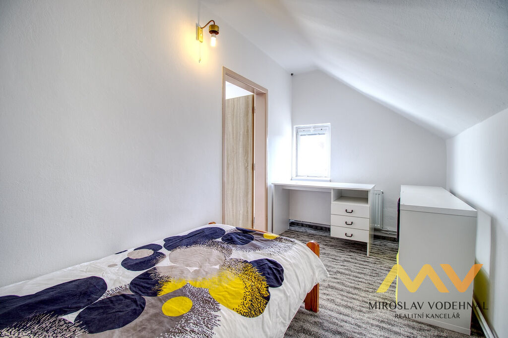 Dispozice: 1. NP: prostorná kuchyň s jídelním koutem, 2 neprůchozí pokoje, koupelna s WC, komora, samostatné WC, technická místnost, chodba a předsíň.