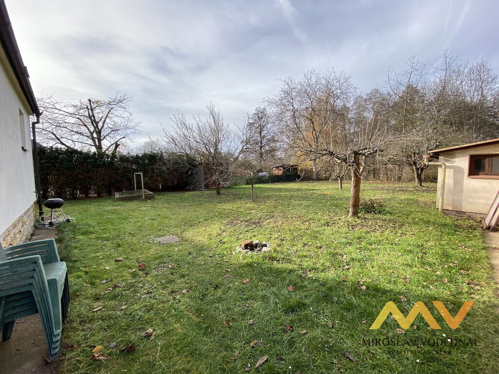 Na oploceném pozemku o rozloze 950 m² se nachází samostatná garáž pro dva osobní vozy (parkování za sebou), vzrostlé okrasné i ovocné stromy a další možnost parkování přímo na pozemku i v ulici.