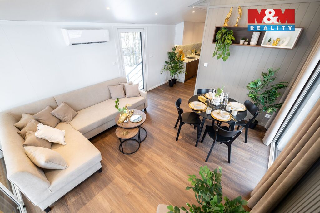 Na prodej nabízíme moderní mobilní dům na klíč, ideální pro ty, kteří touží po klidném dostupném bydlení nebo po pohodovém místě k odpočinku a rekreaci. Tento jednopodlažní dům smíšené konstrukce (ocel, dřevo, plasty, hliník) je vybaven nábytkem a spotřebiči, takže po předání je připraven k okamžitému nastěhování. Užitná plocha činí 57 m². Dům lze umístit na jakýkoliv pozemek určený k zastavění do 6 měsíců od získání stavebního povolení. Předmětem prodeje je samotný mobilní dům bez pozemku. Cena zahrnuje převoz na místo, usazení domu je účtováno dle složitosti případu. Cena je uvedena bez DPH, které se odvíjí od komplexnosti obchodu. Nepropásněte tuto jedinečnou příležitost k pořízení domu a starosti se získáním stavebního povolení na Váš pozemek nechte na projektantovi. Se zajištěním výhodného financování pomůže partner MM finance. Domluvte si prohlídku v showroomu v Rychnově nad Kněžnou ještě dnes. V inzerci použita AI vizualizace.