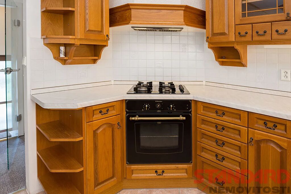 • Kuchyň: plynový sporák, el. trouba Electrolux, digestoř, lednice s mrazákem ETA