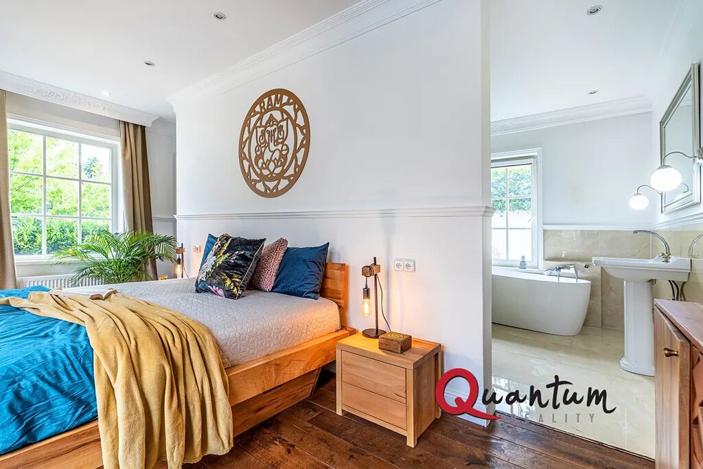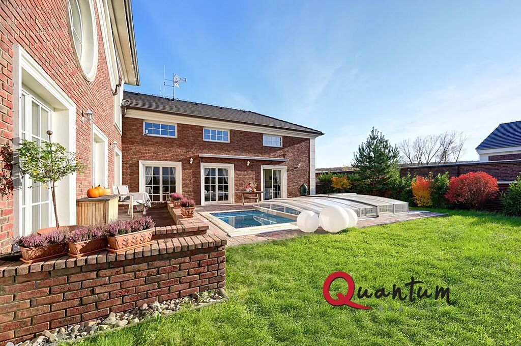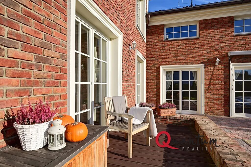 Kvalitní materiály a stylové provedení – fasáda v anglickém stylu, elegantní detaily a propracovaný interiér, který zachovává styl domu.