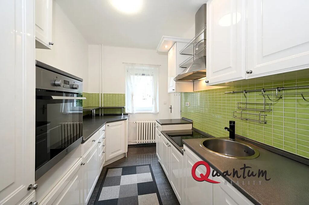 Pokud hledáte klidné bydlení v zeleni, pak je tento byt právě pro Vás. Krásný, světlý a prostorný byt 2+1 o rozloze 85m2, orientovaný do tichého vnitrobloku rodinného domu s výhledem do upravené zahrady. Nachází se v 1. patře ze 3. Tvořen je jídelnou s balkónem 9m2, kuchyní, obývacím pokojem a ložnicí. Je vhodný pro max 2 osoby. Zahrada není k využívání. Byt a celý dům je napojen na bezpečnostní agenturu.