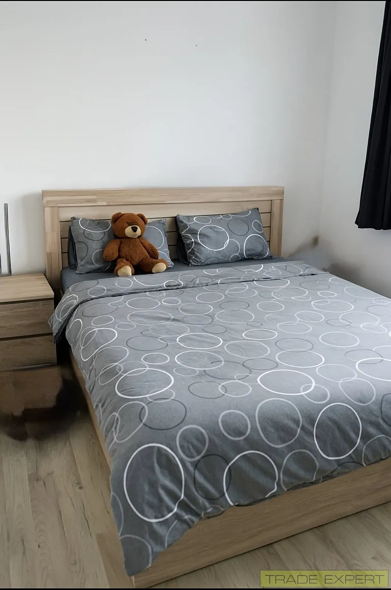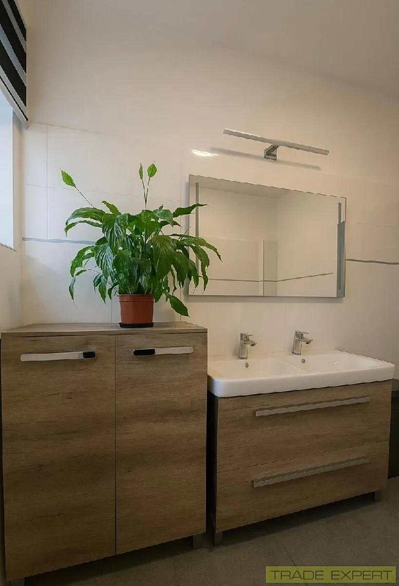 Dispozice: vstup do chodby s vestavěnou skříní a technickou místností a samostatným WC. Z chodby vstup do prostorného obývacího pokoje s kuchyňským koutem a vstupem na terasu. Z ovýv. pokoje schodiště do patra. V patře se nachází koupelna s vanou a WC a dále tři ložnice (12,1 m2, 10,3 m2 a 9,4 m2).