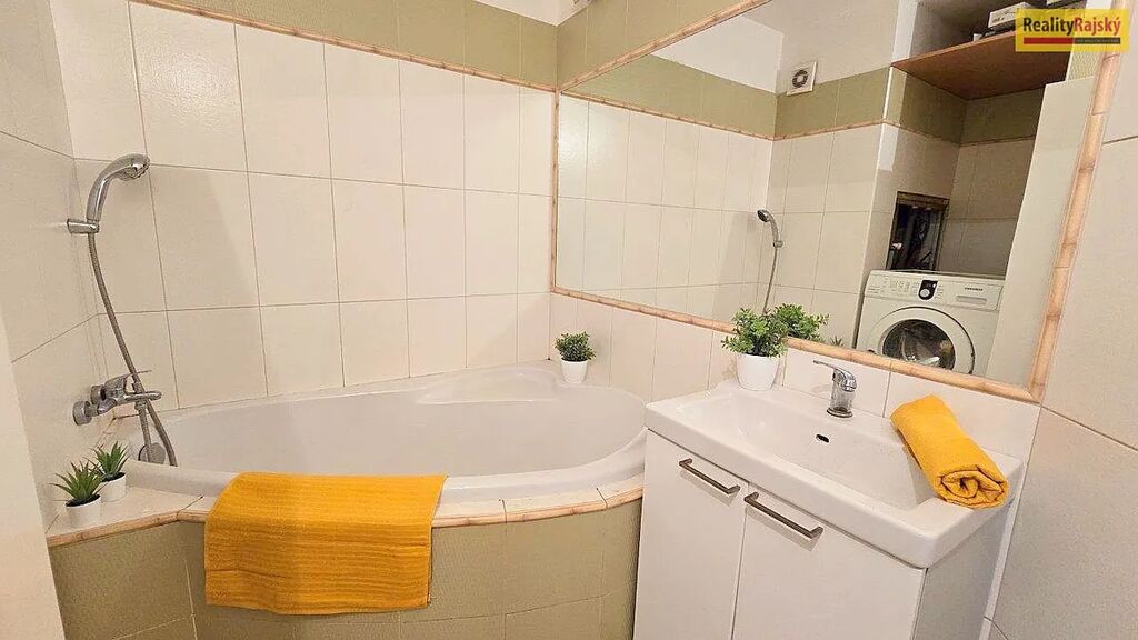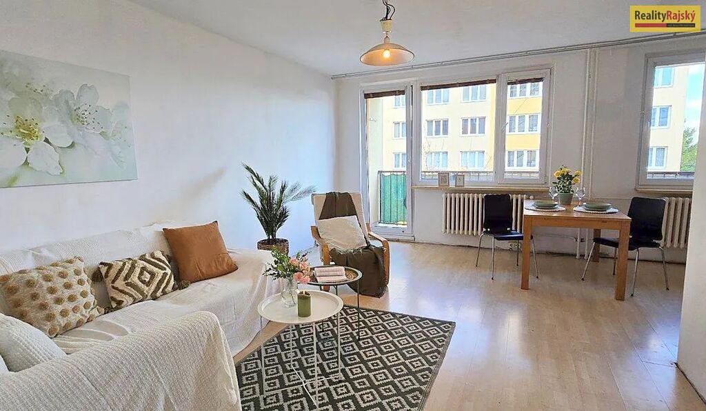 Obývací pokoj je opticky propojen s navazující kuchyní a je zde přístup na prostornou lodžii. Pokoje jsou samostatné, koupelna je stavebně rozšířena. Součástí bytu je i praktická komora.