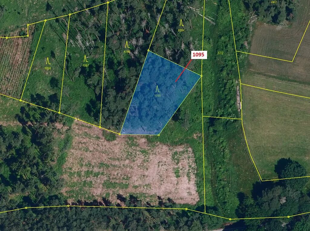 Lesní pozemek o výměře 1427 m2, parcelní číslo 1095, podíl 1/1, katastrální území Mladoňovice na Moravě, obec Mladoňovice, obec s rozšířenou působností Moravské Budějovice, okres Třebíč, Kraj Vysočina.