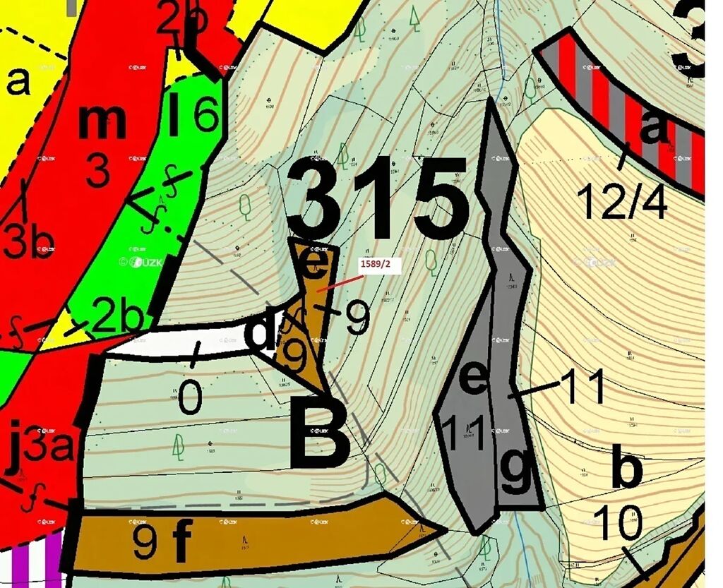 Lesní pozemek o výměře 910 m2, parcelní číslo 1589/2, podíl 1/1, katastrální území Hovězí, obec Hovězí, obec s rozšířenou působností Vsetín, okres Vsetín, Zlínský kraj. Po těžbě.