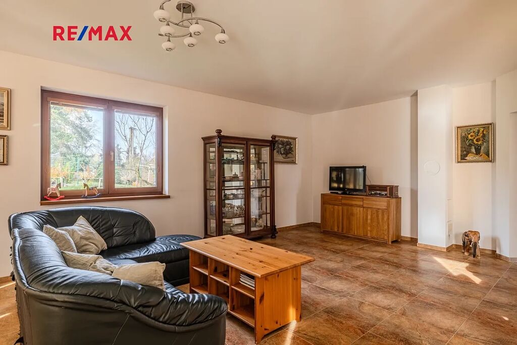 Světlý a útulný prostor s francouzským oknem přímo na žulovou terasu a k vyhřívanému bazénu.