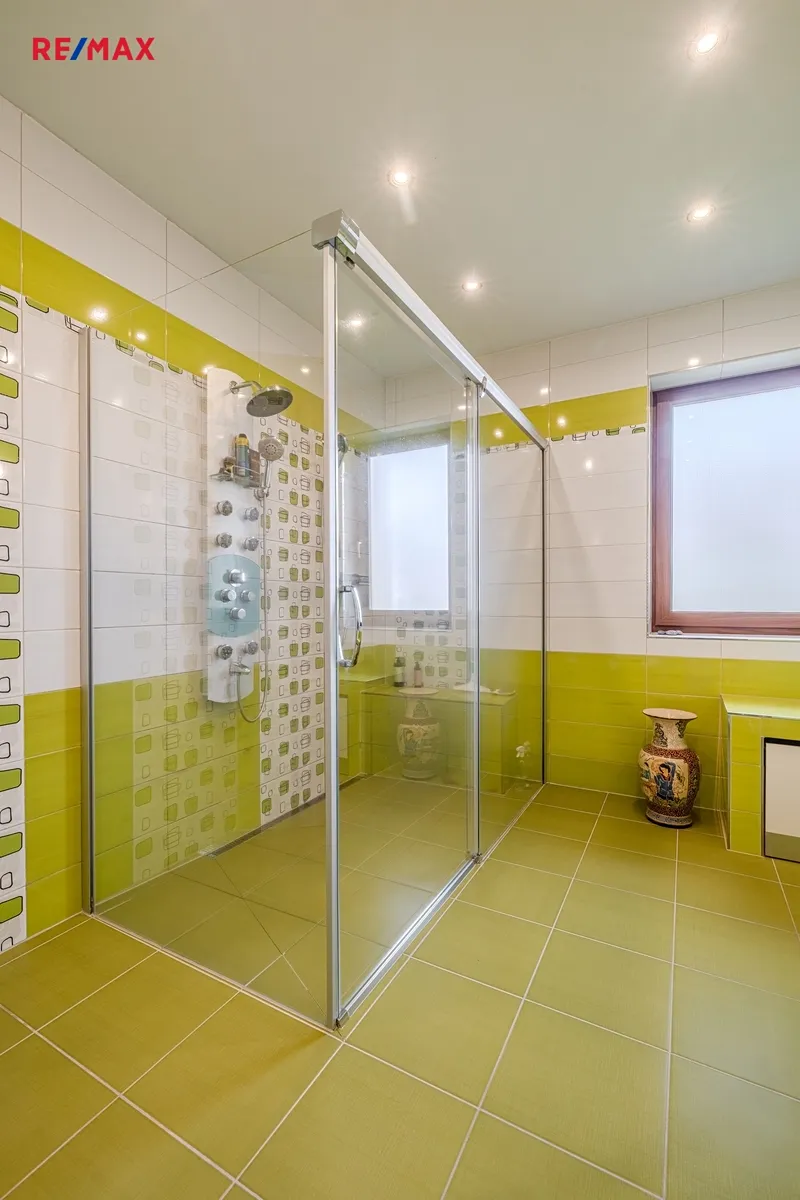 nízké provozní náklady díky tepelnému čerpadlu, vyhřívaný bazén, žulovou terasu, přírodu za domem, klidné místo a chytrou dispozici s dostatkem úložných prostor – včetně dvou šaten.