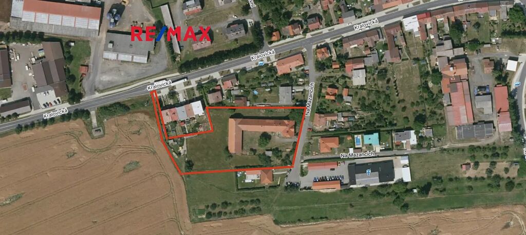 Budovy navazují na dvory a zahrady. Sousední pole jsou ve vlastnictví majitelky, nejsou předmětem prodeje, ale je možný budoucí pronájem.