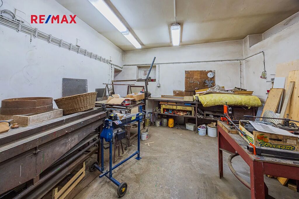 Dílnu lze snadno proměnit na prostor pro řemeslnou výrobu, skladovací areál, servisní dílnu nebo ji využít jako velkou garáž pro 2 vozy díky praktickým vratům z boční ulice.