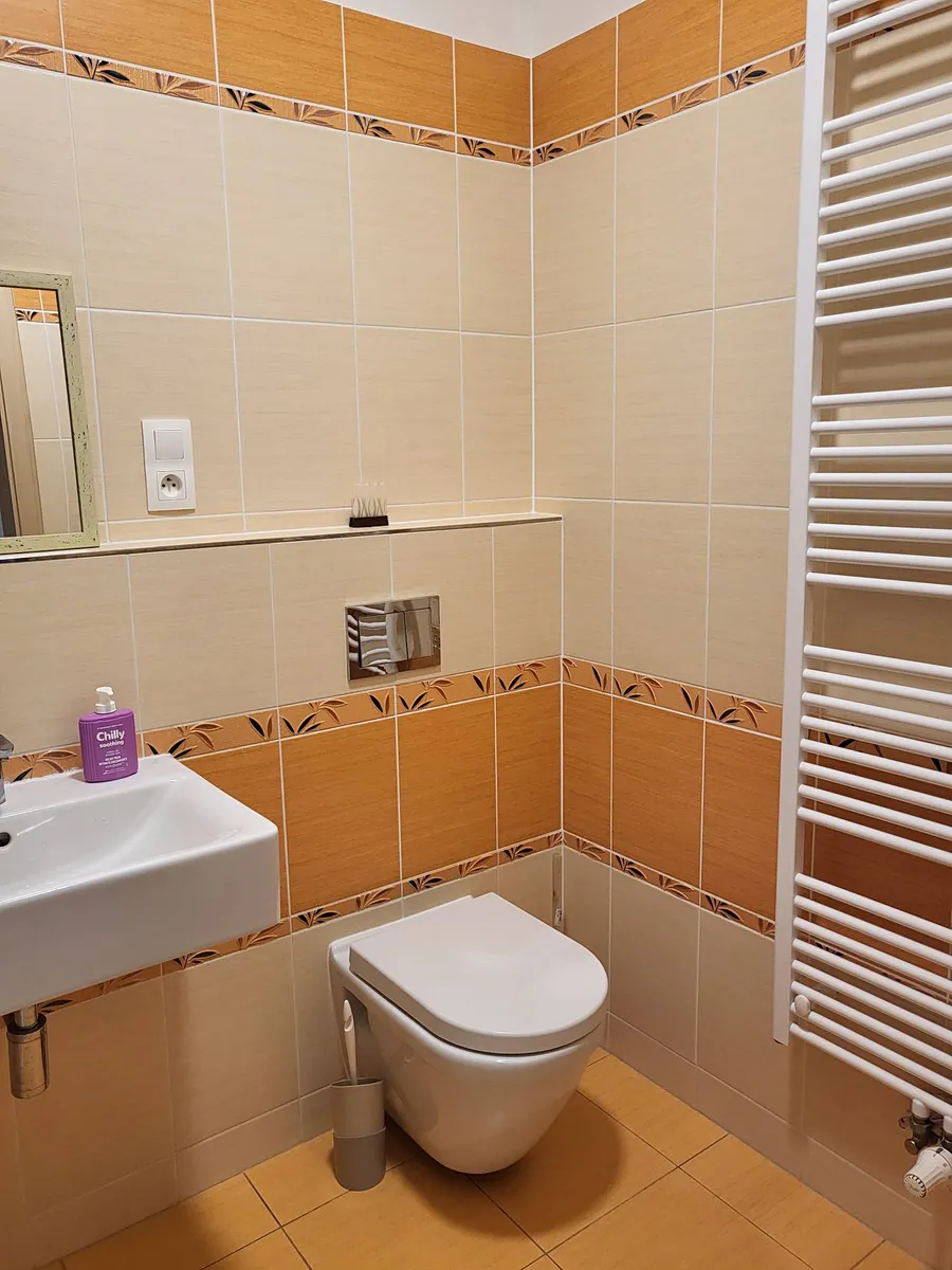 Pokoj bez kuchynské linky, rozkládací pohovka, komoda, skřín, pračka. Krásná koupelna vybavená sprchovým koutem, WC. V předsíni věšák, botník,skřín. V pokoji jsou laminátové podlahy, v koupelně, předsíně -dlažba.