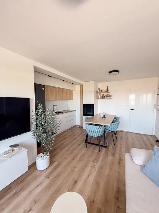Tento plně vybavený apartmán v novostavbě je přesně tím místem, kde si můžete dopřát klid, komfort i dotek luxusu – jen pár minut od moře.
