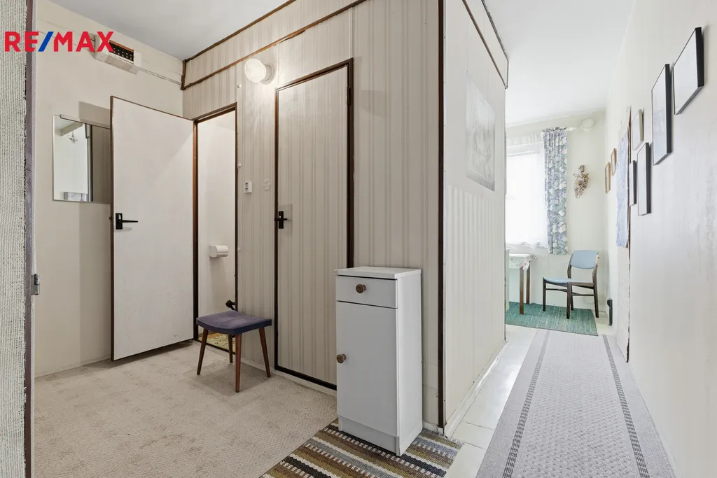 V bytě je koupelna s vanou a samostatné WC. Prostorný obývací pokoj a kuchyň. Po domluvě může byt zůstat plně vybavený a připravený k okamžitému nastěhování. K bytu náleží také sklep, který nabízí další úložný prostor. Parkování u domu nebo v jeho blízkosti je bezproblémové.