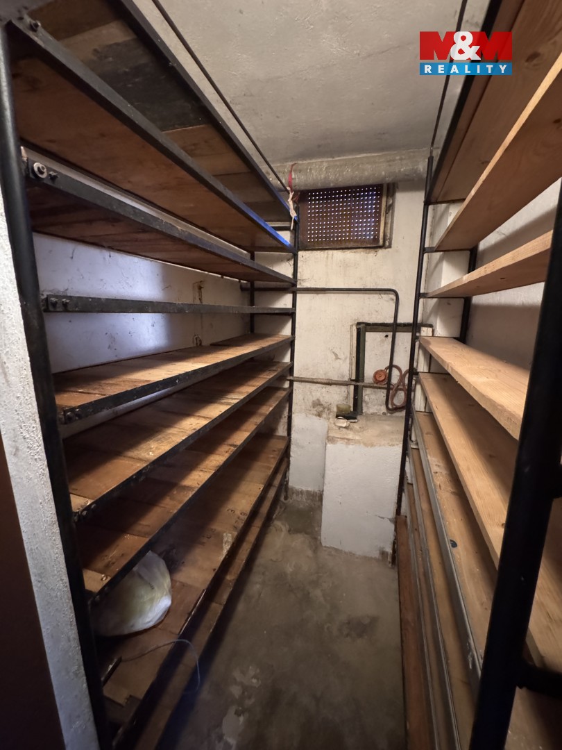 Po vstupu do domu je před vámi chodba která vede celým domem, po pravé straně je kuchyně, komora, koupelna a WC. Koupelna a WC jsou odděleny. Vlevo jsou dva pokoje, jeden průchozí a druhý neprůchozí. V zadní části chodby je vstup na menší dvorek ze kterého je vstup do sklepa a do dílny. Sklep má výměru přibližně 12 m².