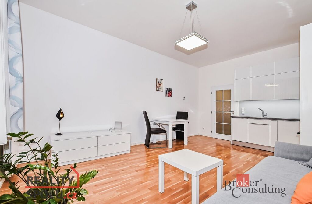 Nabízíme Vám k pronájmu byt 1kk o celkové ploše 35,2m², P3, ulice Ondříčkova, na rozhraní Žižkova a Vinohrad. Byt je umístěný v 5. podlaží zrekonstruovaném bytovém domě Rezidence Ondříčkova. Byt je k nastěhování od 15.12.2025. Jedná se o byt v moderním provedení a s kompletním vybavením. Byt je plně funkční a zároveň vzdušný, světlý s orientací na JV. Dispozice bytu: předsíň (6,9m²) s vestavěnými skříněmi se spoustou úložného prostoru, obývací pokoj s kuchyňským koutem (22,5m²), který je plně vybaven vestavěnými spotřebiči (sklokeramická deska, horkovzdušná trouba, myčka, lednice kombinovaná s mrazákem, digestoř), jídelní stůl se 2 židlemi, konferenční stolek, TV stolek a sedací souprava, která po rozložení slouží jako pohodlné spací lůžko s úložným prostorem. V koupelně (3,9m²) je k dispozici podlahové vytápění, pračka, umyvadlo se skříňkou, sprchový kout, toaleta a je zde další úložný prosto nad pračkou a nad umyvadlem. K bytu náleží sklep v suterénu domu pod uzamčením. Lokalita je bohatá na restaurace, kavárny, obchody a je s kompletní občanskou vybaveností. Jedná se o velmi dobře dostupné místo autem i MHD. Stanice metra „A“ Jiřího z Poděbrad je vzdálena od domu pouhých 200 m. Parkování je možné před domem – modrá zóna. V těsné blízkosti se nachází Mahlerovy sady, kde stojí Žižkovská televizní věž a opodál se nachází Riegrovy sady s možností využití volnočasových aktivit. Vhodné pro 1-2 osoby. Vřele Vám tento byt doporučuji.