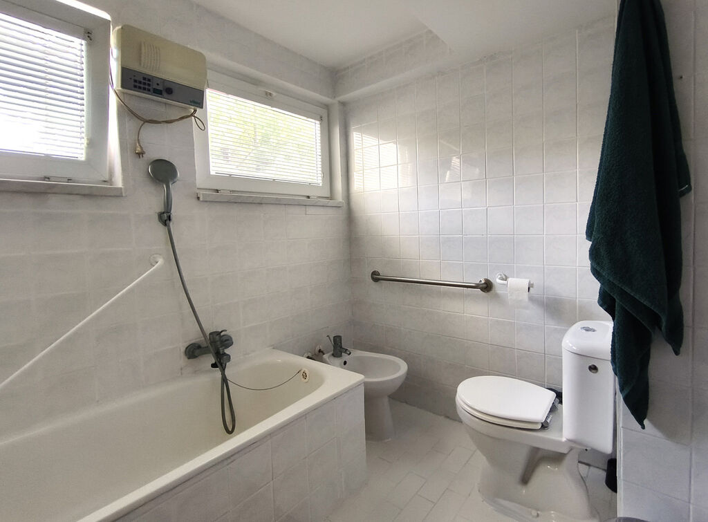 Hlavním vchodem vstoupíme do předsíně a následně se dostaneme do prostorné haly se schodištěm. Po levé straně je vstup do menší bytové jednotky tvořené obývacím pokojem, kuchyňkou, ložnicíc, prádelnou, koupelnou a schodištěm do 1 patra se lze dostat k dalšímu záchodu s koupelnou a pokojem.