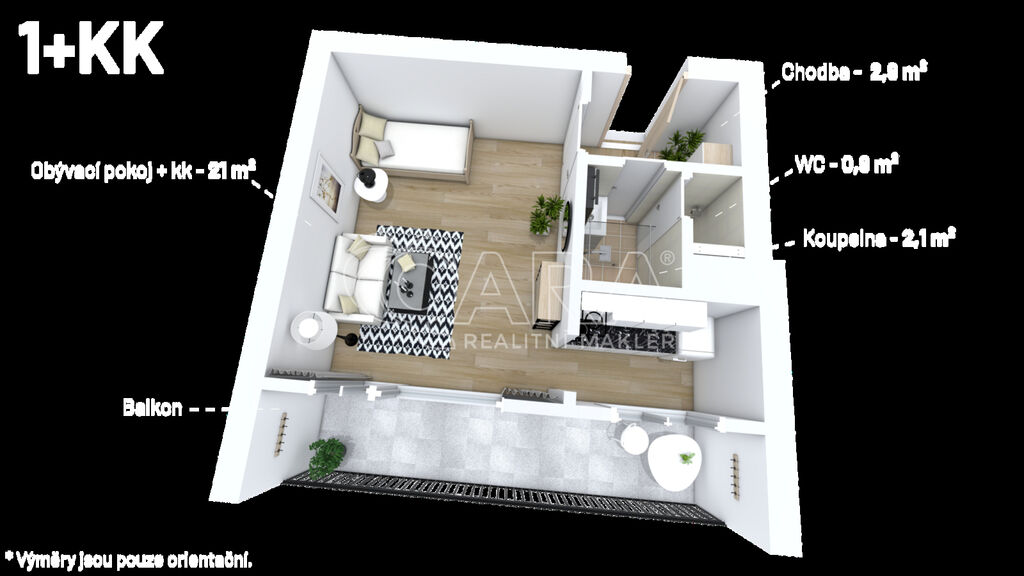 Pronájem bytu 1+kk s lodžií u metra Střížkov