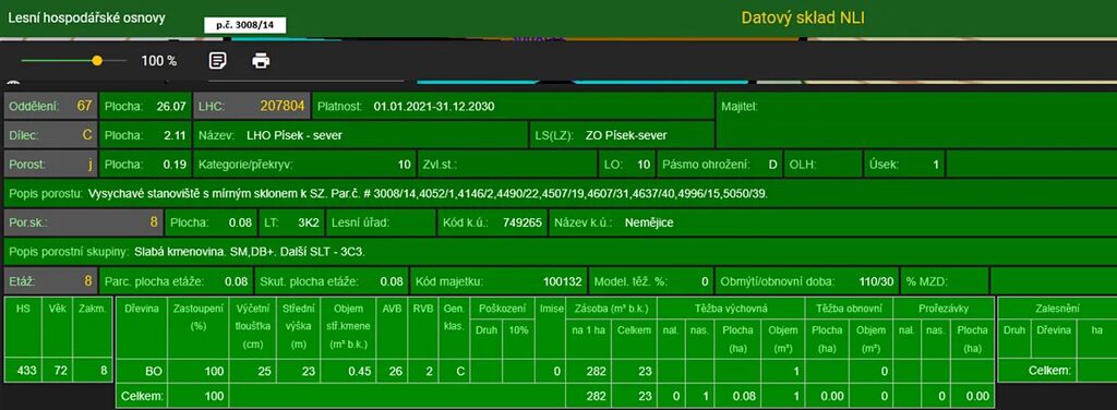 Jedná se o p.č. 3008/14 vedená jako lesní pozemek o celkové výměře 1 899 m2,
