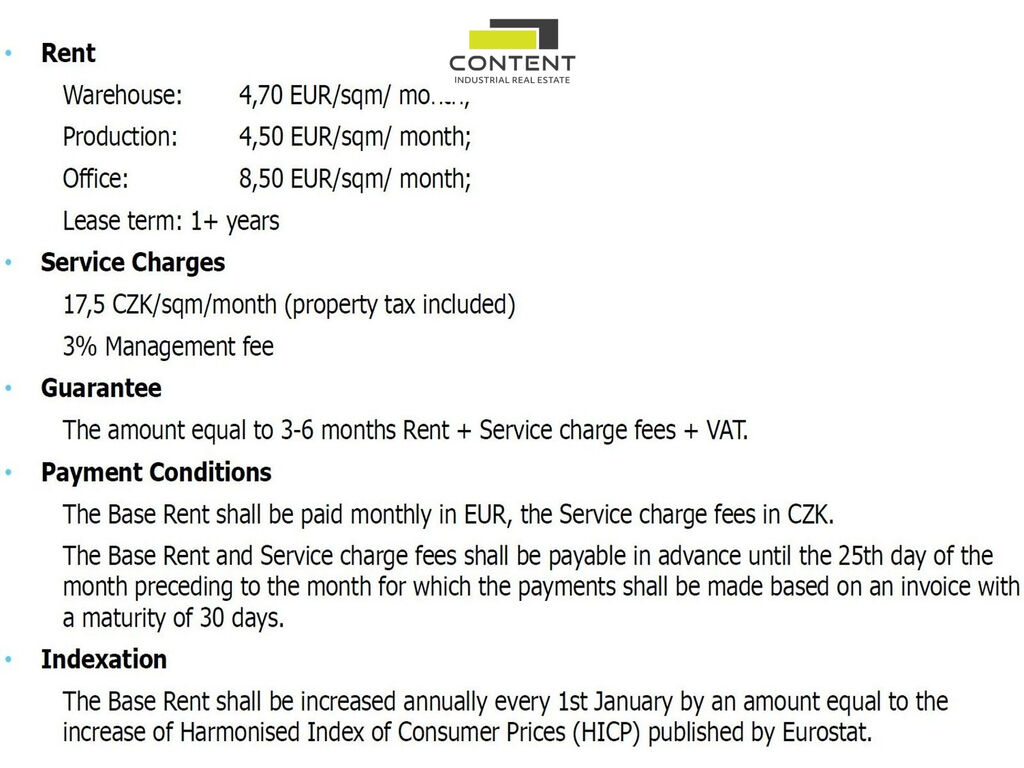 Cena nájmu je individuální, dle dalších podmínek smlouvy. Indikativní ceny ve fotodokumentaci.