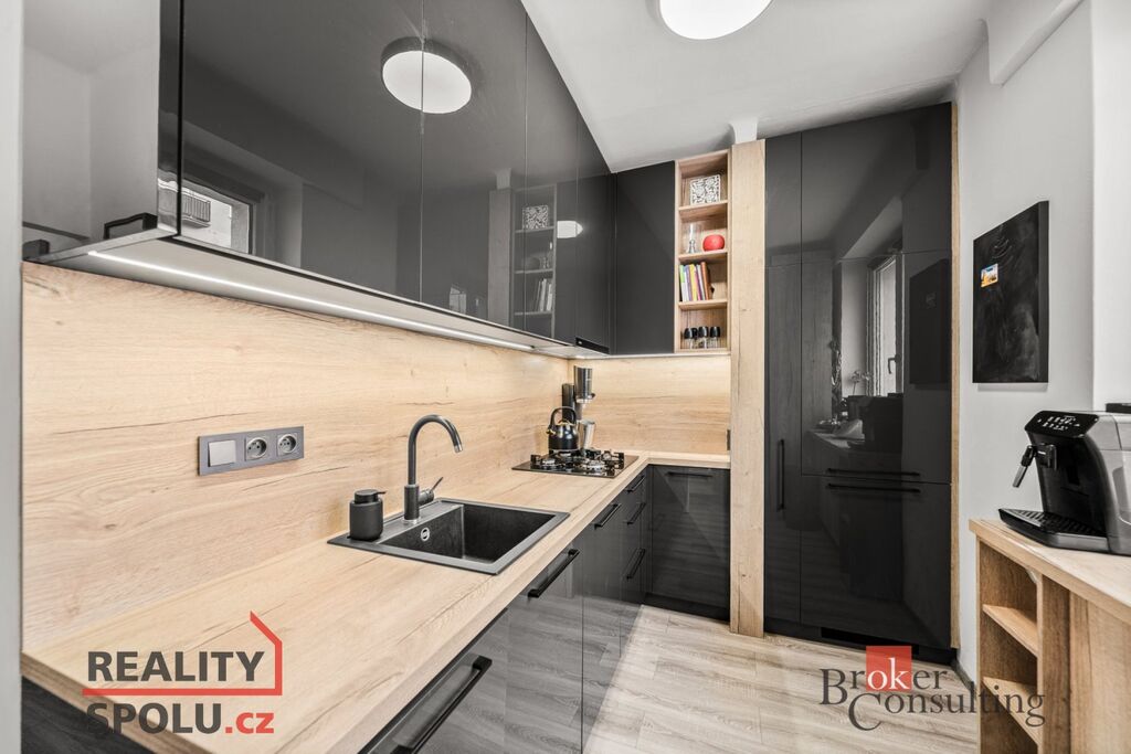 Bytová jednotka prošla pokročilou rekonstrukcí. Součástí prodeje je i nový vestavný nábytek na míru, díky kterému je v bytě dostatek úložného prostoru. Velkou výhodou je nová moderní kuchyňská linka vybavená vestavnými spotřebiči (trouba, varná deska, myčka, lednice). K bytu náleží balkon a prostorná sklepní kóje – ideální pro uskladnění věcí nebo sportovního vybavení.