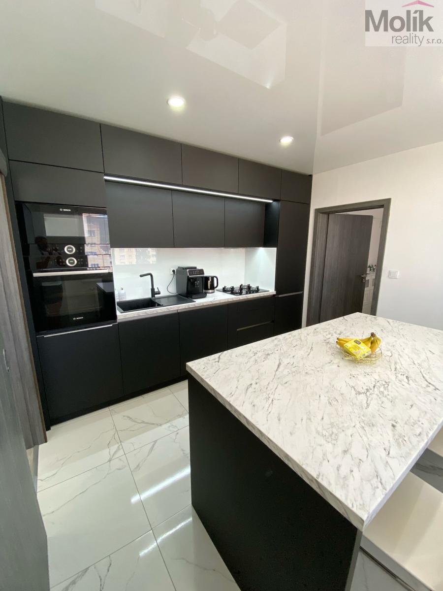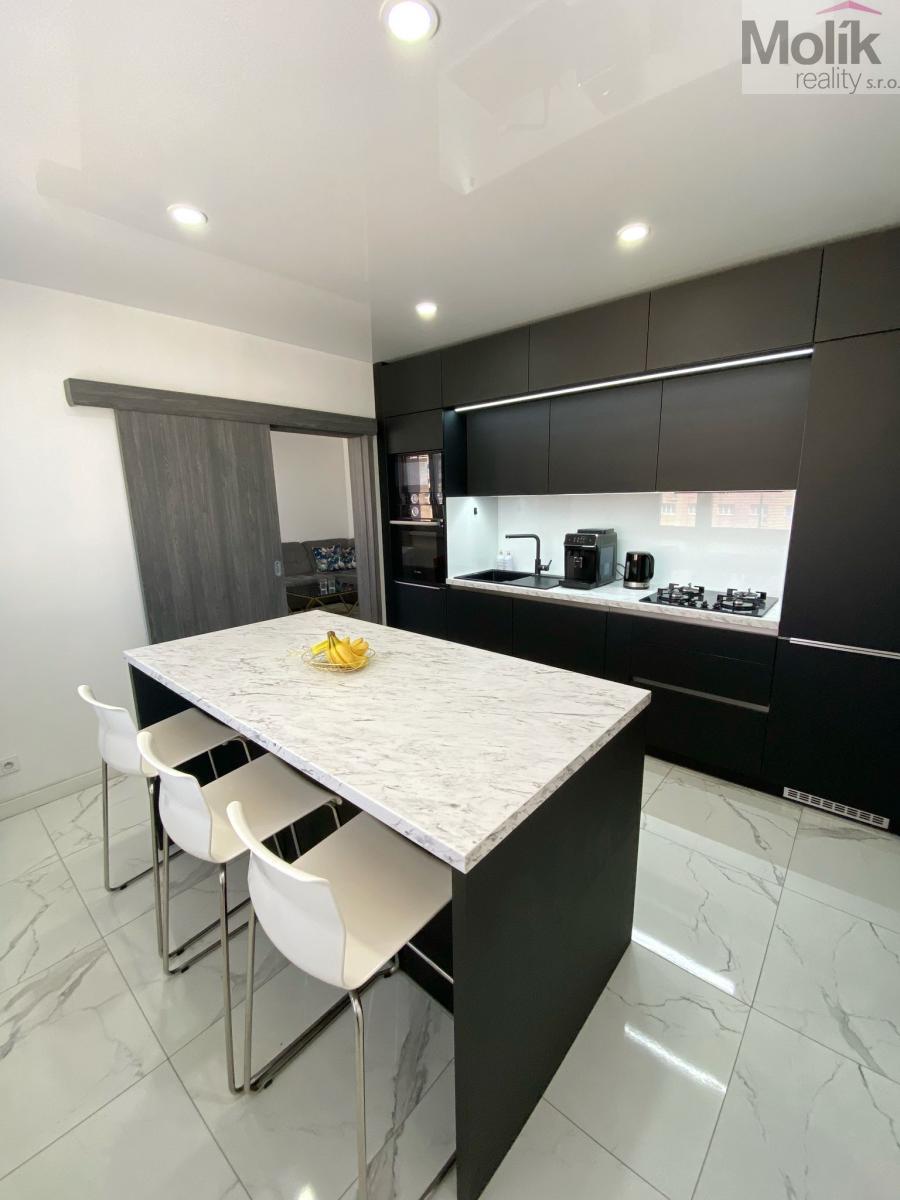 Byt je po kompletní rekonstrukci - Exkluzivní Kuchyň na míru od truhláře (nadstandartní 70cm hloubka) elektrický koš, doživotní Záruka na pojezdy Blum, myčka AEG, pračka LG, lednice, plynový sporák, vestavná trouba a mikrovlnka značky Bosch. Velkou předností je kuchyňský ostrůvek s posezením a úložný prostor. Exkluzivní koupelna nabídne keramickou dlažbu Italského výrobce, 2 umyvadla se skříňkou, zrcadlo s led podsvícením, zásuvku na fén a prostornou vanu značky Ravak se zástěnou ze skla. Wc Ideal Standard. Všechny baterie, sprcha, vestavný splachovací systém, háčky na ručníky jsou značky Grohe.