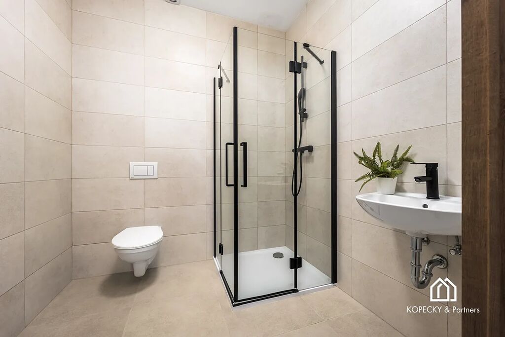 Byt je dispozičně řešen velmi prakticky a komfortně. Základem je prostorný obývací pokoj s kuchyňským koutem. Dále jsou k dispozici tři samostatné pokoje, které můžete využít jako ložnice, dětské pokoje, pracovnu nebo pokoje pro hosty. Byt má dvě plně vybavené koupelny – jednu s vanou a druhou se sprchovým koutem, obě v moderním provedení s kvalitní sanitou a obklady. Samozřejmostí je i praktická technická místnost pro umístění domácích spotřebičů.
