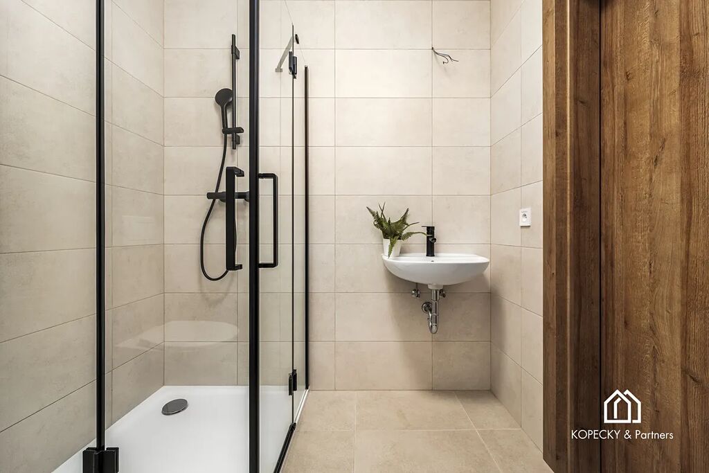 Byt je dispozičně řešen velmi prakticky a komfortně. Základem je prostorný obývací pokoj s kuchyňským koutem. Dále jsou k dispozici čtyři samostatné pokoje, které můžete využít jako ložnice, dětské pokoje, pracovnu nebo pokoje pro hosty. Byt má dvě plně vybavené koupelny – jednu s vanou a druhou se sprchovým koutem, obě v moderním provedení s kvalitní sanitou a obklady. Samozřejmostí je i praktická technická místnost pro umístění domácích spotřebičů.