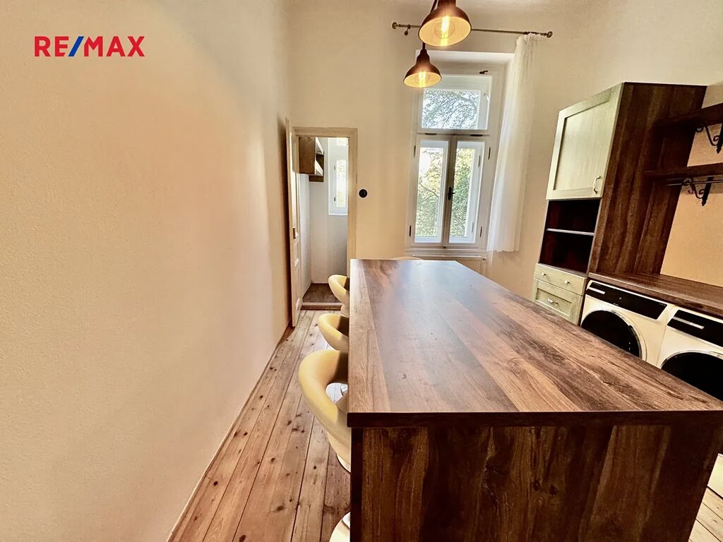 Srdcem bytu je kuchyně s jídelním koutem, která prošla kompletní a citlivou rekonstrukcí. Spojení přírodních materiálů, centrální ostrůvek a dostatek úložného prostoru vytváří prostředí, kde se budete cítit doma – ať už u ranní kávy, nebo při večeři s přáteli.