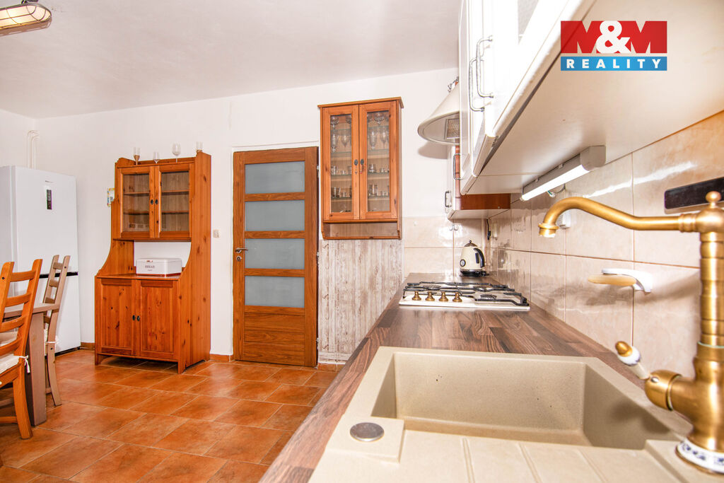 Nabízíme Vám útulný a udržovaný rodinný dům 6+1 v Kobeřicích u Brna. Kobeřice jsou klidná vesnice vzdálená 30 minut od Brna. Dům je po částečné rekonstrukci, ideální i pro početnější rodinu. Z chodby po pravé straně máme vchod do vkusně zařízené kuchyně, která je vybavena plynovým sporákem, digestoří, lednicí, troubou a myčkou, s vchodem do obývacího pokoje. V přízemí po levé straně následuje dětský pokoj, dvě ložnice, technická místnost, koupelna s vanou. Toaleta je vedena odděleně. Podlahy v přízemí jsou pokryty PVC a keramickou dlažbou. Po dřevěném schodišti se přesuneme do prvního patra, kde se nachází velmi prostorný pokoj s plovoucí podlahou, se vstupem na balkón a výhledem do dvora, který lze využít, jak k odpočinku, tak i k zahradničení. K domu náleží dva sklepy a garáž s možností parkovat i před domem. Dům je napojen na veškeré inženýrské sítě. K dispozici je i vlastní kopaná studna s užitnou vodou.