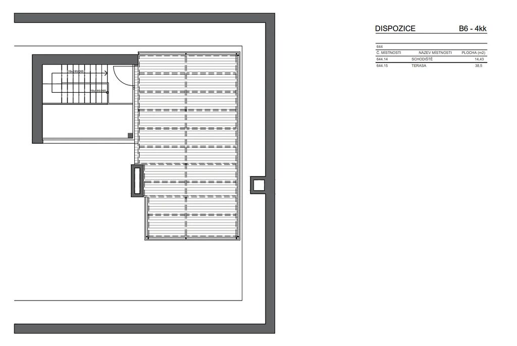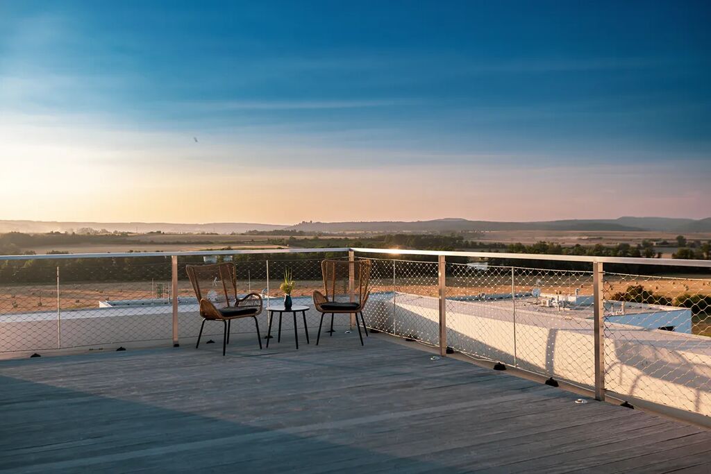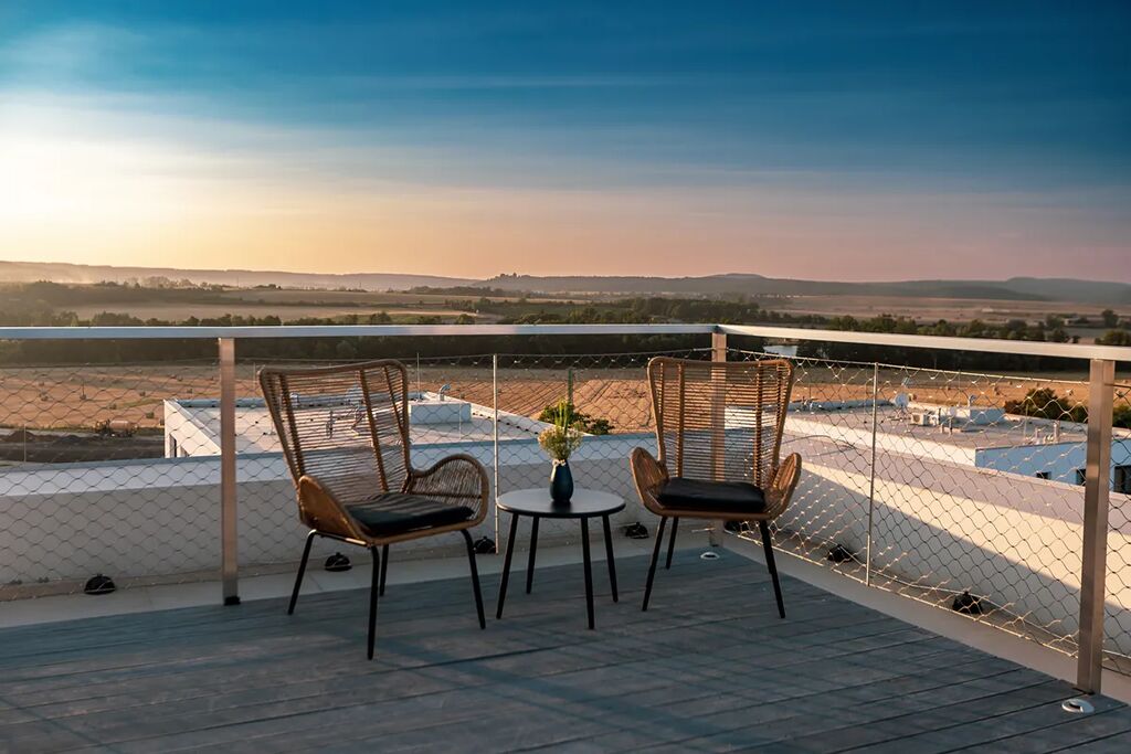 - Soukromá střešní terasa (38,5 m2) – ideální pro relaxaci nebo grilování (pozn.: terasa není dimenzovaná pro vířivku)