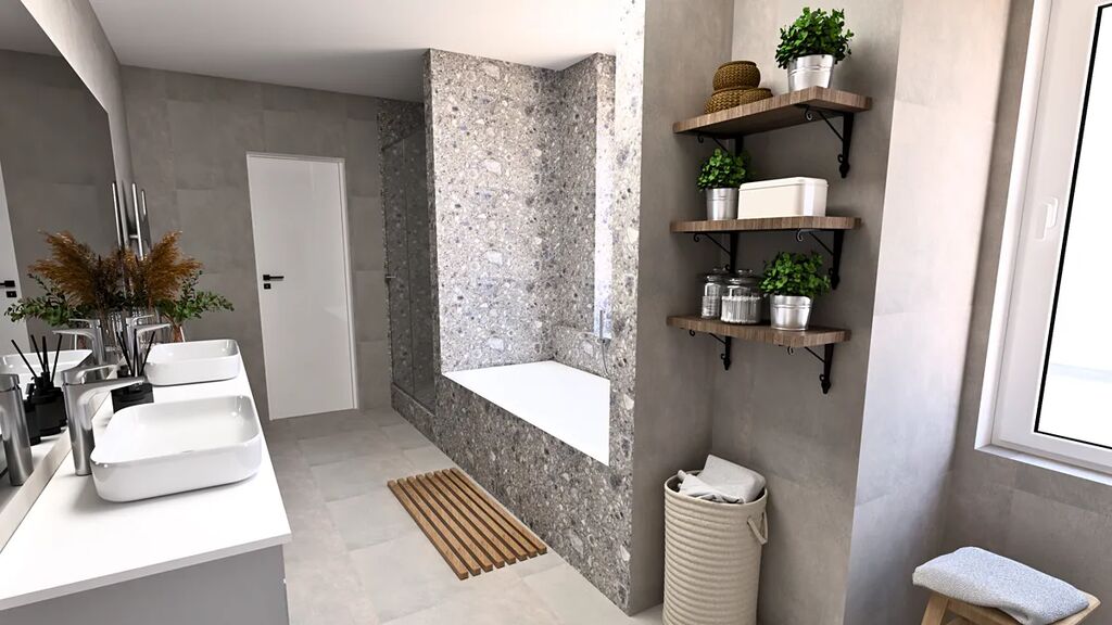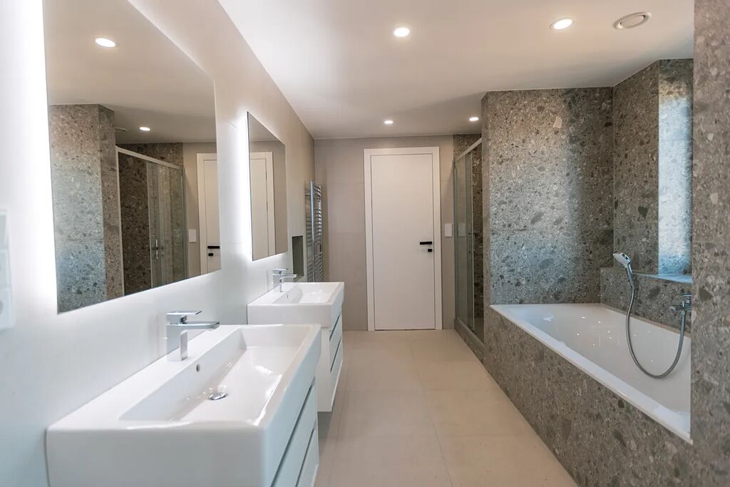 - Nadstandardní koupelny s velkoformátovými obklady