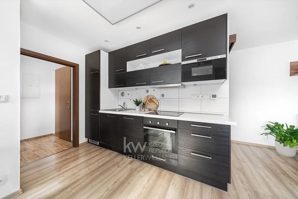 Na prodej je byt o dispozici 1+kk 38.6m2 + lodžie 2.9 m2 + k bytu je zvykové právo využívat sklepní kóji o výměře 5.2 m2.